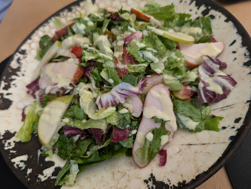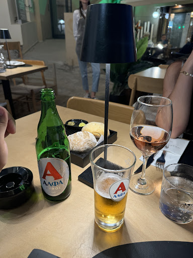 Out of all the restaurants I visited in Greece, I feel like I had the best food at this place. Beside the salaf that was a bit too salty, all the rest of the food had extraordinary flavours. The mastery in the balance between salt and fat was experienceable through the dishes themselves. The sausages with the mashed potatoes, the lamb with the mashed potatoes and the risotto, every dish had great flavours and nothing overwhelming the dishes. I especially liked the grilled flavours on the sausages that added a smoky flavour to the mashed potato as well. The service was also superb. All the waiters were friendly, patient and accommodating. They did however perform some dangerous manoeuvres around us due to the lack of space in between the tables which scared us a bit. The biggest thing that decreased the enjoyment of our meal was probably the wind and the rain. We were seated in their lovely balcony and everything was amazing at first but as the wind started picking up, everything on the table was getting caught in the wind. It only got worse when it started to rain a bit, there was only a parasol that covered us but we still got a lot of rain on us due to the strength of the wind. All in all, it was quite a terrific experience and the food was lovely. The prices are quite affordable, around 12-15 euro for a main dish. The portions are not really big but they are pretty reasonable. I wish I had tried their dry aged beef which was a bit more expensive but it sounds extraordinary. At the end of the meal, the waiters treated us to some local alcohol and some fruits which was greatly appreciated...