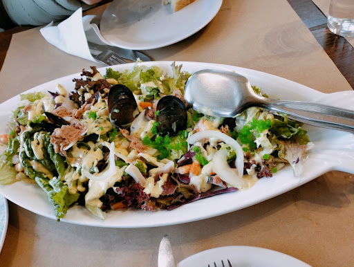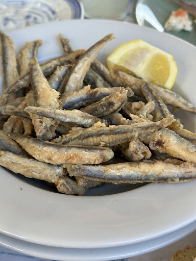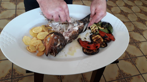 Read moreОфициант уговорил нас взять на 4х блюдо из свежей рыбы за 50 евро, вместо выбранных нами блюд (рыбного микса на 2х и ризотто с креветками за 28 и 18евро). В результате нам просто принесли обычное блюдо на 1го просто из дорогой рыбы! Цена в 50 евро за бурого группера адекватна, но мы чувствовали себя обманутыми, когда увидели не большую рыбу с очень маленьким колличеством овощей и картошки. Наверняка официант расчитывал, что мы не наедимся и закажем еще несколько блюд, но у нас уже не было времени! В результате мы наелись курицей заказанной ребенку, там и курицы было больше и картошки - обычная греческая порция! Еще нам предложили почистить эту рыбу от костей чтоб осталось только филе, принесли специальный столик, манерно отрезали плавники и дали нам все ту же рыбу с костями:) на фото как раз запечетлен этот процесс и можно оценить размер блюда на 4х. Наш чек получился: 50 за дорогую рыбешку + 9.5 за куринное филе, 9.5 за греческий салат и 3 евро за домашнее вино. Еще офицант аж 2ды попросил чаевые! Не знаю с чего он решил что мы довольны. Мы дважды ему отказали. Выбрали ресторан из-за близости к аэропорту, у нас был час на обед. Присоединяюсь к другим отзывам- действительно медленное обслуживание. Такой себе...