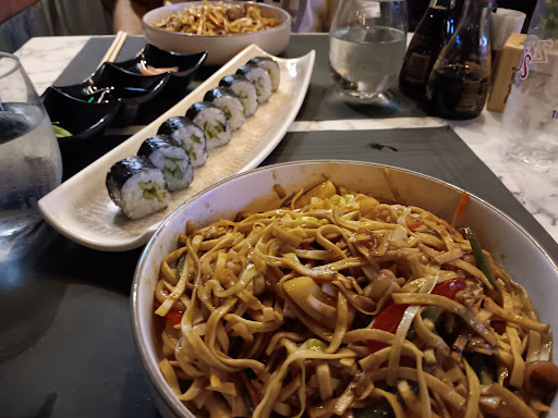 Read moreIf you look at any of my reviews I taste sushi all over the world. I will say that this fish was very fresh. My salmon roll was as good as the salmon roll can get. Now admittedly it's just a salmon roll. I also got the noodles. Egg noodles, shrimps, chicken, broccoli, carrots and that was very good. Overall these two dishes 18€ So not terrible but not inexpensive either.