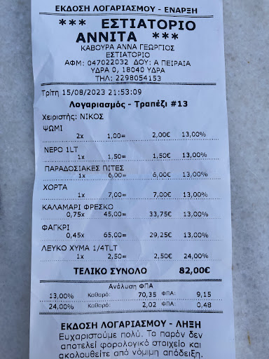 Read moreI had a wonderful dinner experience at Annita Taverna on Hydra Island yesterday. Everything we ordered was incredibly fresh, flavorful, and truly showcased the best of Greek cuisine. The octopus with feta and tomato was an absolute highlight – truly a "wow" dish that I would highly recommend to anyone visiting. We also thoroughly enjoyed the small fried anchovies and shrimp, which were perfectly cooked and bursting with fresh taste. The orzo pasta with octopus was another standout, rich in flavor and perfectly prepared. And to complement everything, the chorta (wild greens) with lemon was a simple yet delicious and refreshing side. Overall, it was a memorable meal with consistently delicious dishes in a lovely setting. I'd definitely recommend Annita Taverna to anyone visiting Hydra looking for an authentic and delicious Greek...