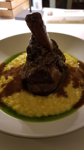 The lamb shank, which was the menu item that caught my eye and lured me in, did not disappoint. Not only was the lamb very tender (having been in the oven 6-7 hours) and flavorful, but was devoid of the tendons and excess fat often found on lazily-prepared cuts. The risotto milanese could easily have stood as a dish of its own, both in serving size and quality. The whole plate made for a delicious and quite filling meal.