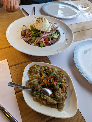 Food was super mediocre for price. For starters, the bread was honestly like toasted whole wheat sliced bread from the grocery store at 1.25 euro per slice. Just decline it. Aubergine dip - not sure if it was flavoured at all. Greek salad - above average but nothing special Shrimp with bisque was the only good dish, and maybe a bit salty. Seafood spaghetti seemed like it was in a bland tomato sauce, also not really flavoured. The pasta itself had mediocre texture and mouth feel.
