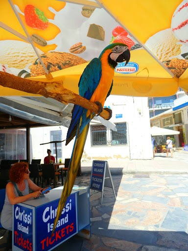 Read moreГуляя утром по набережной Иерапетры мы увидели возле кафе попугая, с которым играл его хозяин, как потом оказалось это был один из владельцев кафе. Нам предложили выпить кофе, но т.к. мы только что позавтракали, пришлось отказаться. Тогда нам предложили просто пофотографироваться с попугаем на память, попугая зовут Митчос. Мы сделали серию фотографий и распращавшись с хозяином ушли решив обязательно вернуться. Потом мы еще несколько раз приходили в это кафе на обед и на ужин и просто выпить кофе или фреши. Заказывали кальмары, салаты - все очень вкусно. Апельсиновые и лимонные фреши, которые освежают и бодряд. Кофе крепкий, даже каппучино более крепкий чем мы привыкли пить дома. Вечером мороженое падают с заженными бенгальскими огнями. Если заказывали просто пару чашечек кофе, то его нам приносили вместе с бесплатным угощением - печеньем. Однажды вечером сидя в кафе наблюдали такую ситуацию: семья заказала апельсиновые фреши, через пару минут фреши были готовы, но их падали вместе со льдом, девочка расстроилась, сказала маме, что не хотела холодный, хозяин извинился несколько раз и сказал, что сейчас же все переделают, новые фреши радушный хозяин вскоре вынес обрадовав всю семью. Место отличное для отдыха с видом на море, где прекрасно можно отдохнуть как днем так и вечером, попробовав вкусно приготовленные блюда. И конечно же сделать фотографии с попугаями. Первое время получалось так, что мы заходили в это кафе утром или в обед и видели только попугая Митчоса с его хозяином. Как оказалось у кафе два брата владельца и у каждого есть попугай. Когда мы пришли вечером и увидели, вместо желто-голубого попугая красного, то немного удивились и спросили где же Митчос. Тогда нам позвали другого владельца кафе, он нас узнал и сказал,что Митчос уже отдыхает, но сейчас его нам вынесет поздороваться, мы были счастливы увидев своего любимчика. Вообщем в этом кафе всё отлично, и меню, и сервис, и вид на море конечно же, и добродушные владельцы (одним словом милые греки, которые всегда искренне Вам улыбаются и готовы исполнить Ваше желание) и бесплатный Wi-Fi, мы всегда были довольны посещением этого...