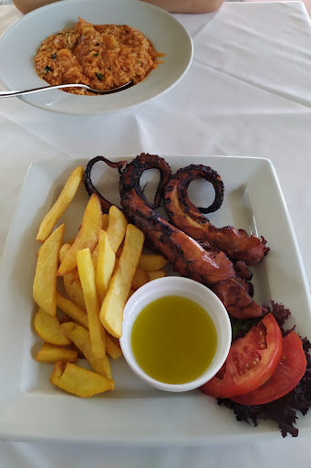 The prices on the menu were outdated, it was actually a bit cheaper and we've got a desert as a bonus. I had grilled octopus (10 euro), unfortunately it was my first time tasting a seafood, so I didn't know that grilled octopus has little taste, so I didn't really enjoy the food that much. But the fries that came with the octopus were delicious. My company ordered rizoto with shrimps (7 euro). Shrimps were amazing but the rice sometimes felt kinda sus, like it was old rice mixed with a fresh one. Desert...