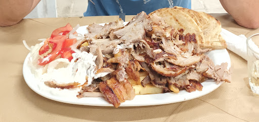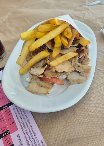 Gutes Essen, große Portionen. Wenn es noch eine Speisekarte in der Wirtschaft geben würde, wäre es super. Diese kann man zwar im gegenüberliegenden Supermarkt, aber die ist leider nur auf Griechisch. Bei ersten Versuch einen Gyrosteller zu bestellen bekamen wir eine Gyros Pita, der aufgemacht auf einen Teller gelegt wurde. Beim 2ten Besuch wurde das Bild gezeigt wo man den Gyrosteller online bestellen kann. Hier wurde das Bild vom Gyrosteller gezeigt mit dem Preis 6€. Bekommen haben wird dann aber 2 Gyrosplatten zu je 9€. Das diese Platte keiner alleine essen kann sollte dem Personal einleuchten. Bild zeigt die Platte nach 5...