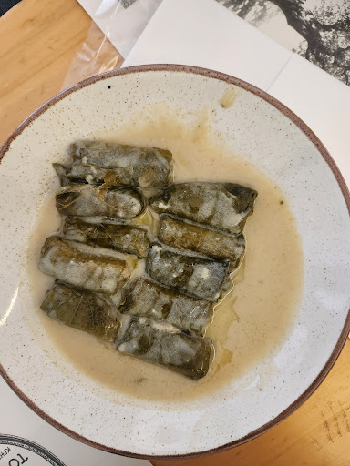 We greatly enjoyed the dolmas (served warm with a luscious texture, much different than the cold ones served in America), house white wine, Kopeli Salad with fresh greens and thyme honey dressing, Mediterranean Eggplant (outstanding), Rabbit with bergamot turmeric lemon thyme rice, Portokalopita (orange cake) and Rakomelo - all incredible.