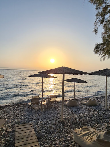This little restaurant is not only in the most stunning location to watch a sunset, but the owner George, and his wonderful staff are incredibly welcoming, friendly, and they speak English! The food is not only fresh, but outstanding in terms of how it is prepared and the combination of flavors. The menu has a core focus on fresh fish, although there are meat dishes to choose from as well, and many traditional side dishes as well as some local specialties. The meal is always followed up with a wonderful gift of dessert. I held a party there recently with over 20 people, and they couldn't have been more accommodating! Every time I go back the food is just as good, and even if you decide you're just going to the beach for the day they have umbrellas and loungers. Do try this out if you are...
