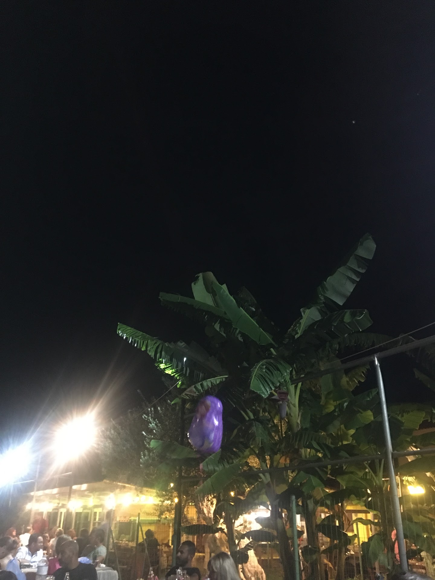 Διαθέτει παιδότοπο με τραπέζια που προτιμούν κυρίως οι οικογένειες με μικρά παιδιά, ενώ ο υπόλοιπος εξωτερικό χώρος είναι καταπράσινος με δέντρα ακόμη και μπανανιές, όπου βρισκόμασταν όλα τα μπαρμπάδια κι οι θειές μαζί, τρωγοπινοντας all together νωχελικα ωσαν παχιές αγελάδες πάνω στο χορτάρι.