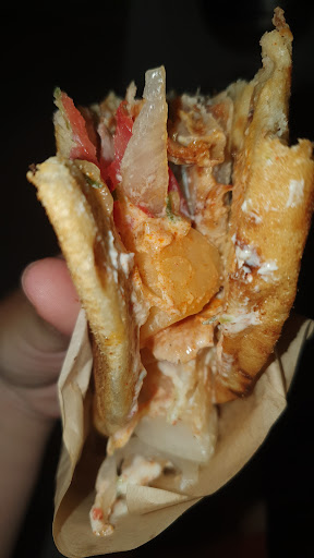 Read moreΈτσι όπως έτρωγα το σουβλάκι μου, δαγκώνω μια μπουκιά και τι βρήκα στο κάτω μέρος σε μια γωνιά?! Γύρο κοτόπουλο!!! Σοκ!!! Πέρα από την πλάκα,το να δίνω 2,50€ για να παίρνω πίτα με μαρούλι,ντομάτα, μαριναρισμένη με γύρο κοτόπουλο δεν λέει. Αν ξαναπάρω και έρθει κομπλέ θα αλλάξω την βαθμολογία.Τα άλλα υλικά αδιάφορα αλλά τουλάχιστον όχι κακόγευστα (ειδικά το μαρούλι που είχα μπόλικο-μπόλικο για να γεμίσει το κενό από τις πατάτες...