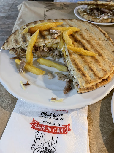 Read moreAugust '21, Greek guy here. We've had dinner there a couple of times, and also had food delivered at our apartment several other times. The food was never the same, there's no cohesion, it's different according to who prepares/makes it. All of the Main Portions are tiny, NOT at all worth their money. Souvlakis (we tried all flavors) are okish. The sausage souvlaki contains a tiny piece of meat. The sausage portion (5,80 euros) delivered at home, was a 15cm completely BURNED black sausage, unable to cut with a knife.. Awful.. we threw it away. Sometimes Gyros Pork is ok, other times they put all the tiny crumbles of meat, from the main form containing the gyros into our souvlaki.. Hideous.. After having food from them several times within 2 weeks of our stay in Kalamata, there were NO receipts issued.. Not once.. Only "Lookalike" fake receipts. Sleazy attitude.. Only food somehow ok are their skewers. Grilled Chicken is overpriced. not even worth it....