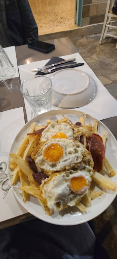 It was French fries, shredded cheese topped with three fried eggs. It was still very good but not what I thought I had ordered.