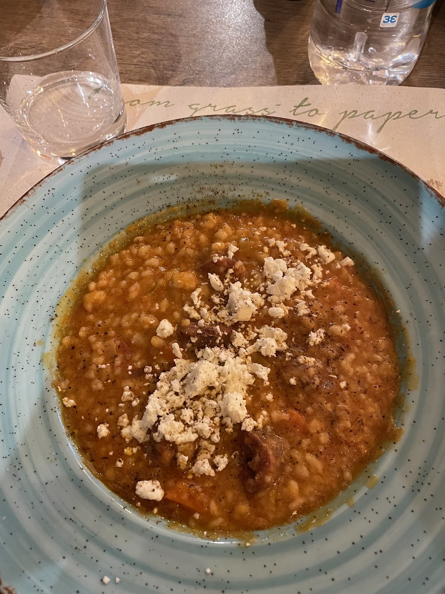 There is a reason this restaurant has 4.9 stars... because IT'S AWESOME! So homely, so delicious, we came two nights in a row! We haven't got a handle on the Greek language so the first time we came google translate helped but the second night one of the waiters speaks English and described the dishes for us. Mind you, it was super fun working out what to get the first night. We started with the Eggplant dip and the feta dip, which translates to 'hot' cheese dip but after actually using my brain, I think it's actually spicy fetta dip. It is not actually spicy, it does have dried Chilli on the top but not spicy.