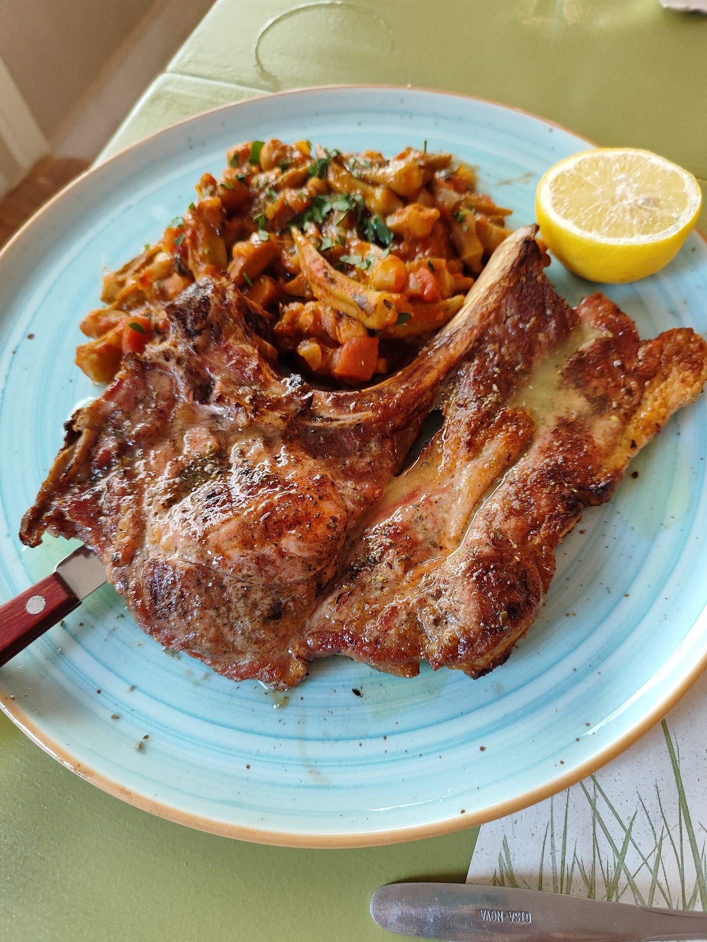Because it's an off season now, the menu was limited, but the choice was still sufficient. We took a greek salad , tzadziki, grilled veal tenderloin and a traditional soup. Everything was prepared from best products and served with a twist. We were also impressed that we were offered to choose a side dish - rice and baked potatoes instead of just french fries which we had everywhere else.