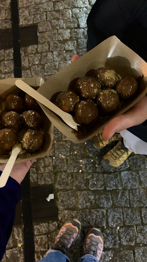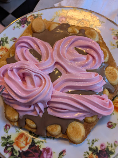 We eventually had a crêpe, a waffle with strawberry ice cream, and an extra scoop of vanilla ice cream. A tip: don’t put the ice cream directly on the waffle—it melts into a strange mess—but the taste was absolutely delicious! The crêpe wasn’t quite what we’re used to, but still tasty.