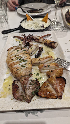 Read moreWe placed an order for 1 squid and 1 meat dish for the child. At first the waiter said that there were no meat dishes, but then he showed us a picture of some kind of hamburger or meat cutlet and we agreed that there was. But they brought grilled squid and some other things tentacles. Which we didn’t order. At first we thought that this was one dish, but no, we saw on the receipt that these were 2 different dishes. The fact that no one comes up to you and asks if everything is okay with you, is it tasty. I I don’t even want to discuss this related to the service and tips. But the bread in the receipt finished off, which we didn’t order, but it was on the table in a bag of some kind of cracker. And there were 2 servings of bread in the receipt! It’s so small that it’s embarrassing)the food was...