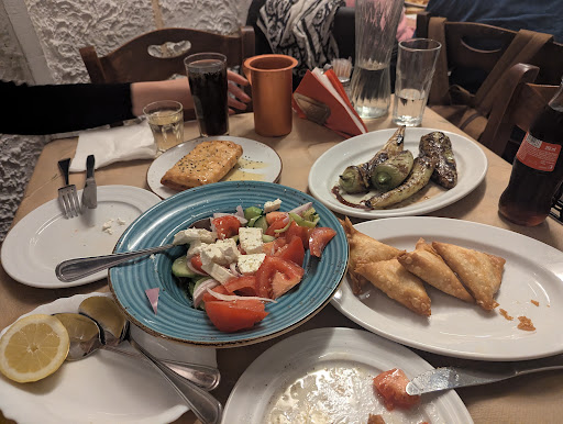 Read moreIt was a very good surprise! The outside of the restaurant does not look like you are entering a restaurant... You see a sign, an open door, and stairs going "somewhere" down, into the unknown. We looked at each other, hesitant as to whether this was a good idea, and we finally decided to enter... At the bottom of the stairs, we discovered a Greek taverna like the ones you would see in the early 90s, with huge barrels securely fixed with an iron construct, just above some of the guests' heads. Despite the fact that there were a lot of people, we were served very quickly, and whatever we chose was delicious! I recommend the mushroom pie, and the meatballs if you are a carnivore. The costs were low vs. the quality of the food served, so the guys ticked all my boxes. What do you think about it,...