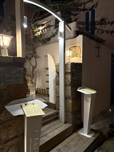 Read moreTo say that this restaurant is outstanding would be an understatement. We loved it! The food is amazing. There are a lot of items on the menu that we previously had never tried. One night we wanted to try sea urchins and were told that the owner was currently out fishing for those. Whatever you order at En Lefko make sure that you try the strawberry salad, we really enjoyed that. What shocked us was the dessert. At En Lefko once you ask for the bill they bring you not only one dessert, but 3-4 different desserts and they don’t even charge you for it. I have never seen that prior to En Lefko in any other restaurant I went to. What really impressed us was the service! Every night we went to En Lefko the owner made sure to greet us and was always within our reach if we needed him. Everyone in the restaurant is extremely friendly. We did wait a little bit longer for the lobster that we ordered one night but were told in advance, once it arrived and we tried it we jokingly said that we would have forgiven them a waiting time of a week for that lobster. Otherwise there is no chance that the waiters will not notice you calling for them. In fact they will put everything down that they have in their hands in order to come to you. The prices are more than appropriate, I would even say that they should charge way more. Overall there is not a single thing that I would criticize about En Lefko, we had a lovely experience there! Usually I never leave reviews for restaurant but in this case I needed to! A lot of restaurants could and should be trained...