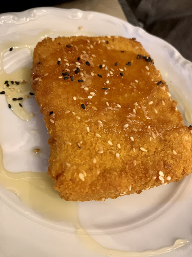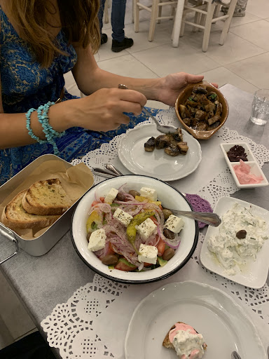 The most delecious garlic mushrooms, tzatziki and stuffed zuchini flowers and greek salad and garlic bread! We took all the Good stuff! Everything was so delecious and The sweetest staff ever! There was even a surprice shot and banana caramel cake at the end! All in all: so Good food and Good Vibe! The servers here was very polite and helpfull and the chefs was so sweet and made us the best dinner! Very nice greek kitchen and delecious food! We Will...