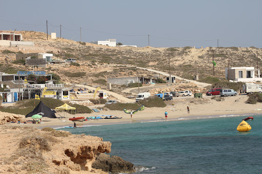 Great place to kite-, wing or windsurf. It is a nice station and have good rental equipement. Though having used my own kite gear but rented a wingfoil. Unlikely as some else here commented the people of the station are very friendly and helpful. The beach is tiny and for all our safety and happy sailing they created some rules which I fully support. With gusty winds and hard rocks around, I was very happy to make use of their launch and safety service and not having to rely on other people. One mistake and you or your kite will end up on the rocks or between windsurfers. For a small fee you also get complimentary beach beds...