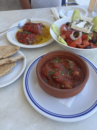 Read moreHad lunch here 4 times this vacation. It’s a calm and chill place, perfect for a break from the beach. We tried different meze’es and it was excellent. Favorite was the stuffed paprika with feta and meatballs in tomato sauce. Greek salad is also very good. Quick service, friendly...