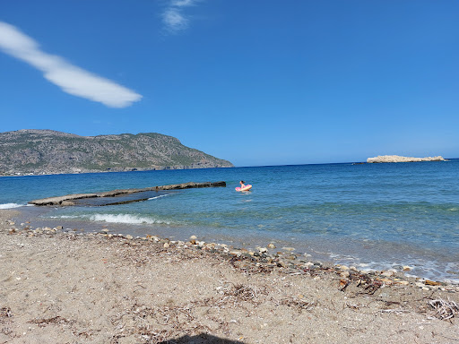 The food is good and tasty, the staff friendly and an umbrella and two sunbeds cost 10€. You can drive to the parking lot next to the tavern or on foot. From the beach you can go to the terrace to have lunch or a refreshing drink, the terrace is on the beach. The place is quiet without much fuss and noise and you can relax and enjoy the sun. There is sand on the beach, but there are stones in the water, making it a little difficult to access the water, but it is good. There is a small pontoon made of betor on which you can fish, there are several types of fish...