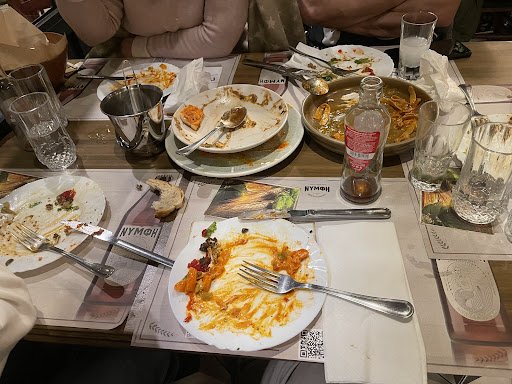 As you can see we emptied everything on the plates aside from a bit of pasta since we...