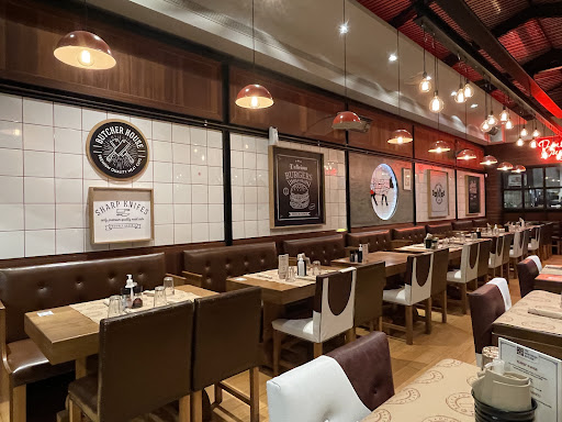 Having coved a lot of mileage in steaks and burgers over the years, I wasn’t very happy with the meal we got recently there..!! I have eaten steak in an other location of this restaurant chain and was very good..!! But this time we ordered burgers medium-rare but we got them medium and quite dry as the meat did not contain enough intramuscular fat to quality for a juicy burger, the standard French-fries that accompanied the burger reminded us the fries of a souvlaki place precooked and refried..!! The hamburger ban was very light in consistency and rather spongy, the tomato was very thick cut for burger filling..!! Overall the burger appearance, taste and quality was below standards for a place specialising in burgers..!! Prices were ok and the service was satisfactory..!! Something was missing from this burger that would give them that special touch of good...