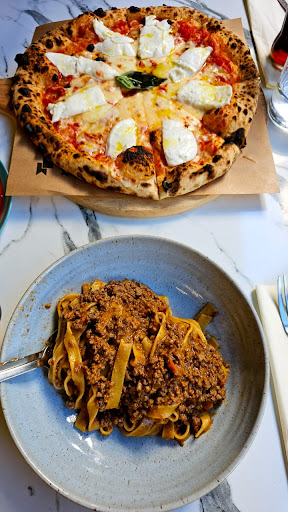 Price was right. Crust was a bit soggy by the time it got here (delivery), tasted somewhat flat and probably lacks long fermentation times. Tomato sauce was a disaster , Greece has excellent tasting tomatoes, better than San Marzano, so this was a let down for me. We opted to not get buffala and yet the mozzarella used was adequate. All in all, even though it was subpar it still was one of the better pizzas you can get in Athens, which speaks volumes on what the locals expect from a good pizza. Three stars because it was cheap, if it was pricier i would probably 've rated it a two.