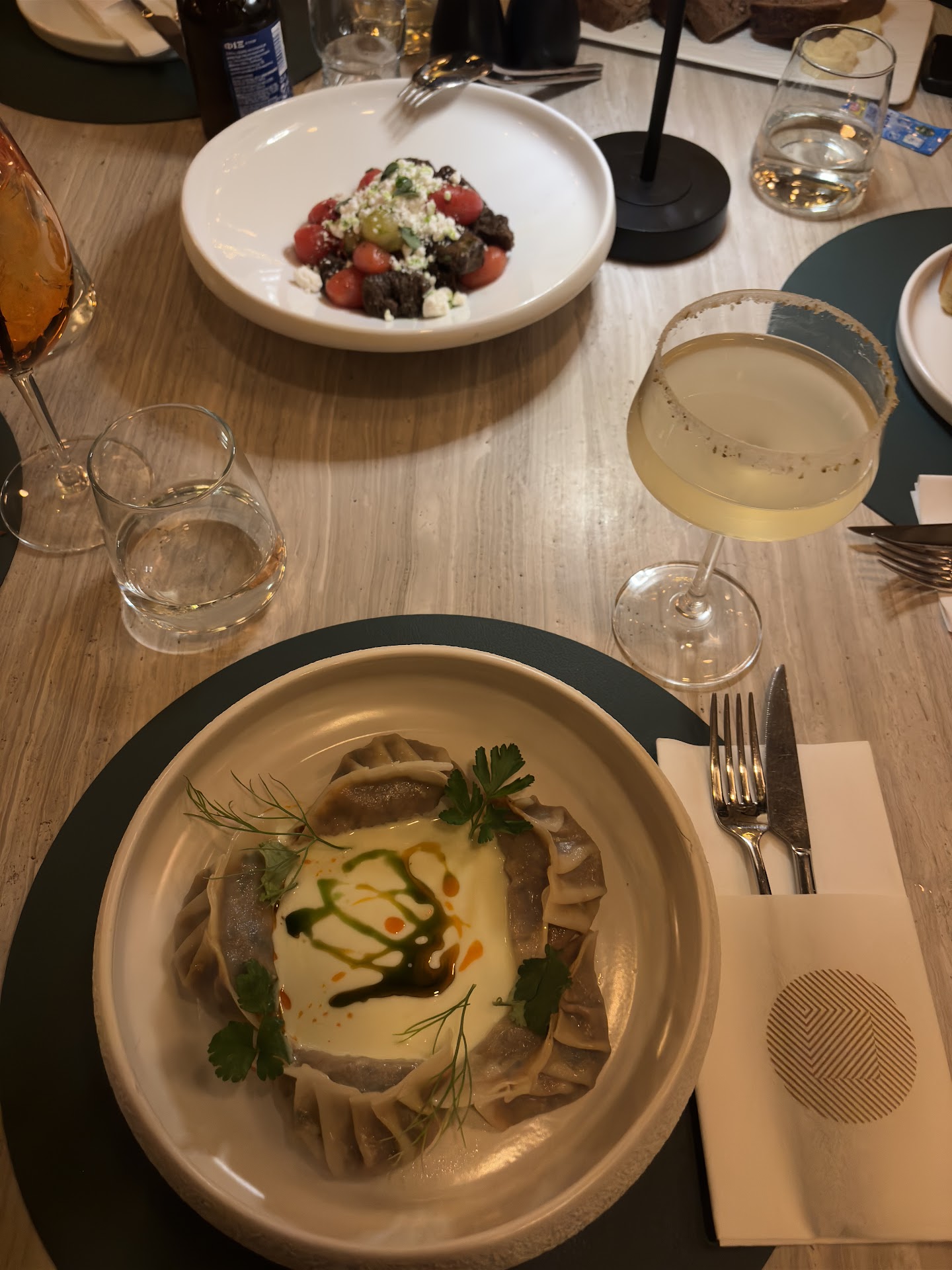 Read moreWe came here with my family on new year’s with no reservation and thankfully we didn’t have to wait long to take us to an available table. We were sat to a table very close to the door and we asked to switch because we were cold (due to the door opening and closing). They quickly and very politely moved us to another table. However it was not stable at all and their “solution” was to make it lay on top of the other table to “stabilise” it, which of course did not work. They said that it only happened that same day (I believe it was broken long before that). We changed tables again and we were brought only 2 food catalogues and 1 wine catalog for 4 people. The dishes were really tasteful, but in my opinion the portions were small for the prices. The drinks were really good but there was no catalog for them so we didn’t know what they had or their prices. The staff was kind and friendly. The space is beautiful, however the music was really loud and a bit disorienting at times. Lastly, they have a room at the back where employees go to smoke. Mind you that is inside and with no...