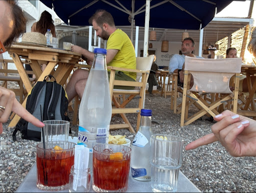 Breakfast here is such a joy light, fresh, and best enjoyed right after a morning swim in the sea just steps away. Coming out of the water and sitting down for a meal feels like the essence of island life. In the afternoon, their cocktails are fantastic, refreshing, and perfectly timed with the golden Aegean light. By night, it transforms into a cozy spot where you can enjoy their mini ice creams and the most heavenly orange chocolate cake moist, rich, and unforgettable.