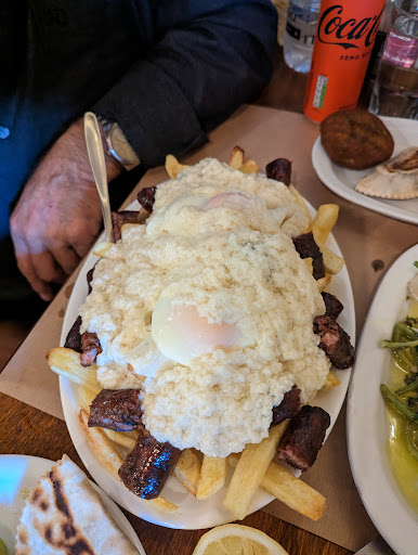 Unfortunately we did not have a good experience at the restaurant, we came because of the score on Google and it was a mistake. First time in Crete that I was disappointed. I ordered a 100 gram hamburger for 10.5 euros (very expensive). Before ordering I asked to know what type of meat because I don't eat pork and I was told it was beef mixed with lamb so I ordered. In practice, they served me three meatballs with a fried potato, not really a hamburger. I felt that I had been tricked but I panicked.