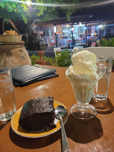 Read moreThe menu is comprehensive but most of it is unavailable. The lady explained what was and we had pork souvlaki, moussaka and a Greek salad. They ran out of Mythos but the Alpha is fine. I tried the local white wine and asked for 0.5l and pretty sure the carafe was 1l! It's pretty strong too The kebabs were great. Moussaka fine and salad good. We were given raki and fruit to finish. The chihuahua was very friendly and had no visible signs of any disease as some reviews say. In summary this is old style small Greek village restaurant with only what they have available to cook. Set your expectations accordingly and you...