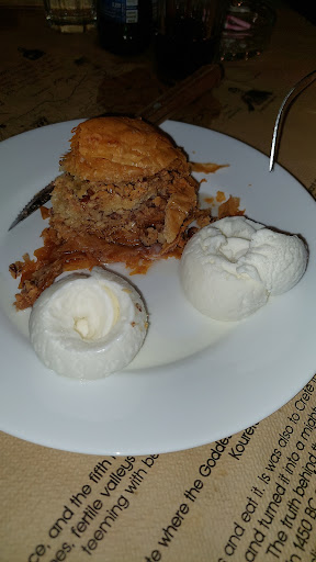 Read moreWe we have visited the Cave of Agia Sofia. On the way back we have found this place. The Atmosphere was relaxed and friendly. There was the Greek traditional music being played in the background. We have ordered eggplants as an appetizer . It was really tasty cooked in breadcrumbs. 😋 As a main course we have ordered lamb chops with fries and Greek salad. We didn’t wait much except that eggplants and meat were served almost at the same time. Lamb was tasty and fresh. Fries were not that good, a bit burnt and we prefer bigger slices. Salad was with fresh veggies and good quality feta cheese. Lamb was that tasty that we have forgotten to take photos of those. At the end we were offered a little dessert made of Greek yogurt and sweet carrots, which was quite unusual to see and tasty. We were also offered two types of Raki, standard and cinamon one. The last one was really tasty. We were even thinking to buy one, but we were offered it as a gift. The bill was relatively inexpensive. All in all, we recommend this place and wish to return to try other...