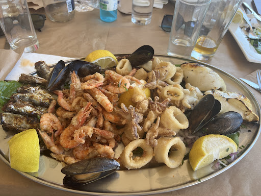 the seafood platter is definitely not worth it! Everything was deep fried and really poor quality. Truly the worst price quality ratio I’ve had so far for a seafood platter. the Graviera local cheese pane is a bit tasteless…just a fried cheese with very little flavor the shrimp saganaki is decent, but given the price definitely not worth it the grill platter for one person can be shared between 2 people for sure. The meat was very dried (except for the pork meat)