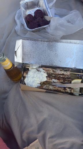 Read moreWe went because of the better reviews out of 3 restaurants in close proximity. We’ve ordered 3 chicken souvlaki portions. A bit expensive for 3 souvlaki skewers per portion with fries (apparently we were supposed to get couscous too) per portion but the seagulls ate it before we opened the box on the beach - couldn’t be arsed to go back as it was tasteless. We also had grilled octopus which was not cooked well and beetroot salad which was very bitter so avoid both. The staff were friendly. Definitely bring your own food and just use buy drinks...