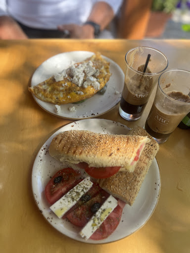 Enticed by the welcoming atmosphere, we returned for breakfast the following day. We weren't disappointed! My husband and I shared a perfectly cooked omelet and a hearty ham sandwich, both bursting with flavor. The portions were incredibly generous, so much so that they practically doubled as lunch! Complementing the food were two refreshing Greek frappes, the perfect way to start a sunny day.