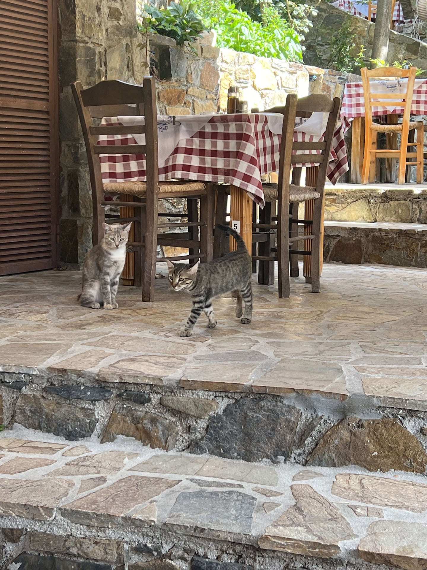 Too many cats over there… The high rate I don’t understand. Probably the large coordinated buses dropping ppl there during lunch eating first time greek dishes. No reason to stop there... One Euro was charged for the cutlery (sorry but should we have eaten with our hands?). The guy pointed at the table. It was for everything on the table. I’ve seen small charges in other restaurants but usually for a basket of bread or a few olives that were served. I never had to pay for the basic cutlery. Seems very stingy and I would have preferred not to pay that Euro. Nothing here reflects the Cretain culture nor...