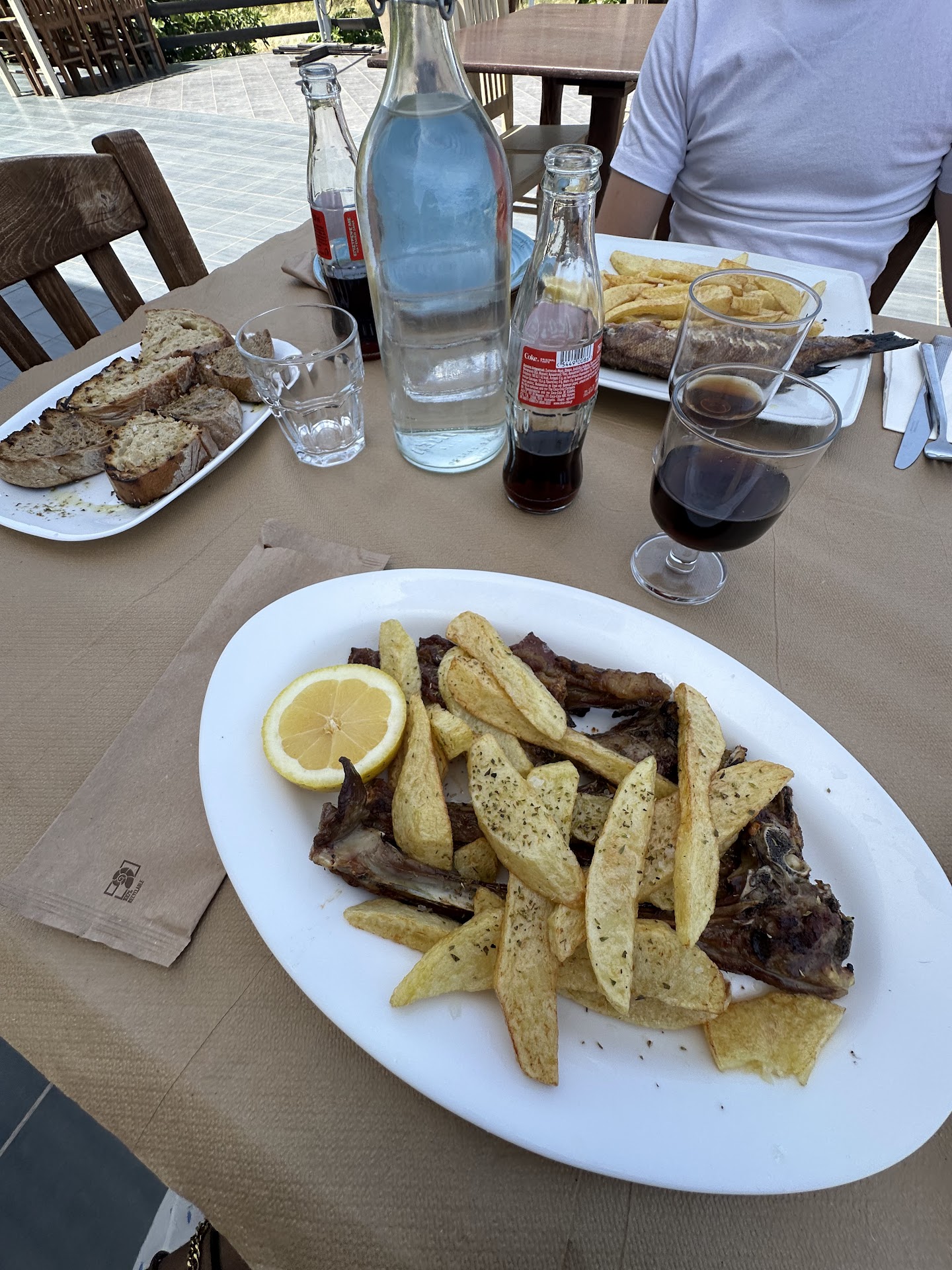 🍽️ Food Every dish was delicious and served in very generous portions — you definitely won’t leave hungry! ✅ Greek salad – fresh vegetables, creamy cheese, and fragrant herbs. ✅ Fruit and balsamic salad – a vibrant and refreshing combination of flavors. ✅ Grilled sardines – fresh, juicy, with a slight smoky taste — one of the best dishes to try! ✅ Small fried fish – crispy and lemony, a perfect appetizer with white wine. ✅ Grilled fish (sea bass/dorado) – super fresh, flavorful, and perfectly grilled. ✅ Lamb – tender, aromatic, cooked over an open flame with traditional spices, highlighting the rich taste of the meat. ✅ Pasta with eggplant and olives – juicy, well-balanced, and full of authentic Cretan flavors.
