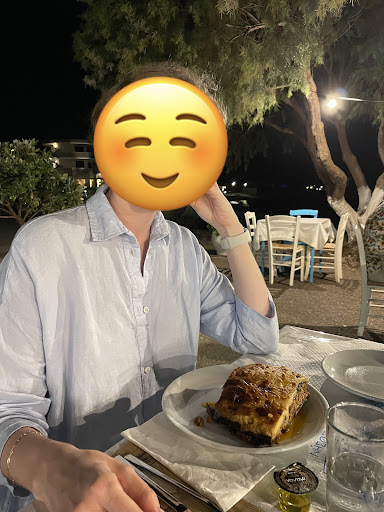 We walked along the promenade and found this gem a little further from all of the noise. The staff were so friendly which really made this place for us and we can say we’ve made friends and memories for life. We had some really good food and the portion sizes were very good (I’d already eaten some of the chips in the photo so don’t be put off by that) and the food was really tasty, especially the pork skewer. We came back again another night but this time just for a drink and we were the last ones in the taverna and it was so peaceful because of the great location. Prices were very cheap for the quality of food, and we liked the house white wine (we didn’t like a lot of wine in other places here). Definitely give this place a visit, and if you see this review, boing boing baggies! ;-)...