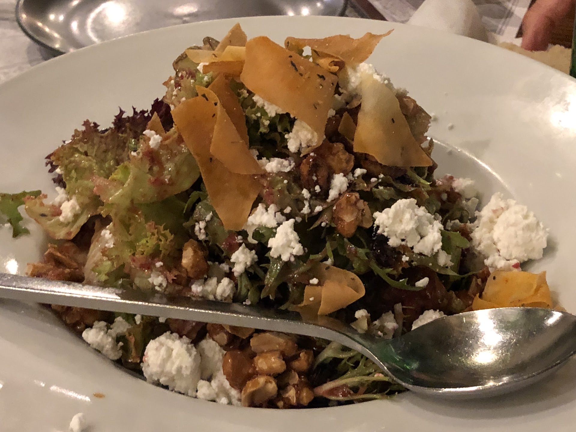 Ήρθε η σαλάτα με το ψωμί. Το ψωμί σε σακούλι... άποψη!! Μπαγιατικο... πολύ... Η σαλάτα φρεσκουλης. Μόνο φρεσκουλης από σούπερ μάρκετ τηγανιτη αραβική 5 μικρά κομμάτια. Σταφίδες, τις μαύρες που είναι και πιο οικονομικές.. και μπαλσαμικο . Ίχνος λαδιού ο φρεσκουλης ! 10 ευρώ η σαλάτα παρεμπιπτόντως. Πληρώσαμε 10 ευρώ σαλάτα που φτιάχνουμε σπίτι και εκεί δεν την έπλυναν κιόλας. Μύριζε συντηρητικό και σακούλα. Τουλάχιστον σπίτι τη πλένουμε να φύγουν τα πολλά. Έρχονται τα κυρίως::: Μερίδες τυπικές έως και μικρές για το κόστος τους . Οι γαρίδες ... 3 μεγάλες... με το έντερο φυσικά. Να φας και ότι ακαθαρσίες έχει φάει η γαρίδα... άποψη... η σάλτσα από τις γαρίδες έτοιμη.. Barilla... γεμάτη σκόρδο. Το μπεργκερ τώρα. 5 με 6 τηγανιτές πατάτες το μόνο ωραίο φαγητο που ήρθε στο τραπέζι. Το μπιφτέκι του είχε τόσο σκόρδο που δεν μπορούσες να καταλάβεις αν τρως μοσχάρι ή άλλο ζώο , και το μέγεθος ήταν για να χορτάσει παιδί δημοτικού! 14 ευρω το μπεργκερ .... goodies καλύτερα θα ήταν... και δε θα μυριζαμε σαν ασβοι από το σκόρδο! Πάμε παρακάτω... Πέννες.... πέννες di Pollo Πρώτη φορά το έφαγα στο la pasteria , τι πιάτο Θεέ μου !!! Εκεί.... ήταν χειρότερο κι από πέννες μπλουμ. Σκόρδο.... σκόρδο... σκόρδο.... Κοτόπουλο για δείγμασε μικρά τετράγωνα κομματάκια. Πιο μικρά από κρουτον . Τόσο σκόρδο σε έκαιγε η γλώσσα σου . Και το άλλο πιάτο!!! Ψαρονεφρι. Καλό ήταν, όχι τπτ ιδιαιτερο αλλά δεν είχε τόσο σκόρδο, για να μη ξέρεις τι τρως . Είχε πούρε και μια καφέ σάλτσα με μανιτάρια. Μανιτάρια ίσα ίσα .. τα έψαχνες! Και το ψαρονεφρι 3 κομμάτια. Αν τα ενώσεις ... το μέγεθος μοιάζει με σπιρτόκουτα..!!! 14 ευρώ, το σπιρτοκουτο !!!! Δεν το προτείνω σε καμία περίπτωση! Δώσαμε 80 ευρώ ( χωρις γλυκό) για να μας κοροϊδέψουν ότι είναι κάτι ... Το μαγαζί και το φαγητό ετοιματζιδικο ! Ενω έχει απίστευτα πολλά μαγαζια η περιοχη ,να φας σαν άνθρωπος με λιγότερα χρήματα και φυσικα σωστό φαγητο . Όχι να βαριούνται να φτιάξουν μια σαλάτα και να παίρνουν έτοιμες. Όπως και το νερό! Ζητήσαμε για 2η φορά νερό . Και ζητησαμε να φερουν κανάτα και μας έφεραν ξανα μπουκάλι. Το 1ο το φάγαμε οκ ... 2.5 ευρώ η πλαστικουρα. Ουτε καν γυαλινο το μπουκάλι. Το νερό της κανατας λέει, είναι ζεστό. Βάλε ζεστό.!!! Και μας χρέωσε και το νερο 2 φορές! Φυσικά!! Πως θα αγοράσει συσκευασίες έτοιμες για την επόμενη ημέρα! Άποψη κι αυτό.... έμαθαν να γλυτώνουν ένα κάρο λεφτά στο όνομα της άποψης. Αν θέλεις άποψη επαρχίας και χωριού να έχεις και ανάλογη κουζίνα. Όχι τα φαγητά δήθεν γκουρμέ και να ναι έτοιμα. Ή αν θέλεις γκουρμέ κουζίνα να έχεις και γκουρμέ χώρο! Και να το πουλάς και 25 με 30 ευρώ το άτομο αυτό. Όχι όπου βολεύει άποψη και γκουρμέ.... Στο τέλος επειδή δεν παραγγείλαμε γλυκό... δεν μας κέρασαν ούτε 1 σφηνάκι , τπτ ... 1 γλυκό στα τέσσερα... Το οποίο και δε παραγγείλαμε γιατί υποθέσαμε πως θα είναι κατεψυγμένο, φυσικα !! Αποτυχία, πεταμένα χρήματα και δυστυχώς πλέον οι μύγες δεν είναι παχιές, για να χαλάμε χρηματα δοκιμάζοντας τον καθε τυχοντα που άνοιξε μαγαζί! Άνθρωποι που δε σέβονται τον κόσμο, και άνοιξαν μόνο για να κάνουν αρπαχτές και να λένε πως...