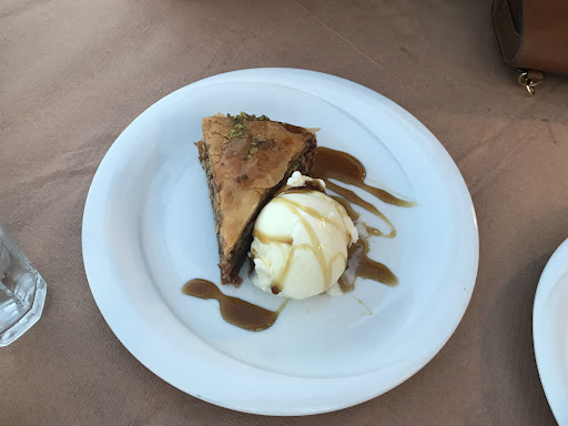 We recommend the Feta cheese in the oven for starter, Gyros plate with pork and for dessert the Baklava with ice cream and Alberto special, this two desserts are so big that you can share it for 2.