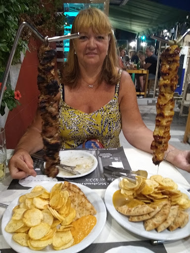 What a meal. You have got to visit and I can recommend the chicken or pork spikes. They where both flavoursome, tender and covered with secret sauce. The chicken was honey based that dropped of onto your crisp like potatoes and pita bread. The pork was s spicier sauce that was more s dipping sauce. Equally nice so pick the one you prefer meat wise. We also had stuffed mushrooms for starters. What I really liked was that the waiter / owner talked us through the menu, did not up sell anything and actually told us not to order to many dishes!! Where in UK would do that? The house white wine was probably the least nicest we have had but we still managed to drink 1/2 litre of it. While bill was €31.50. An absolute bargain...