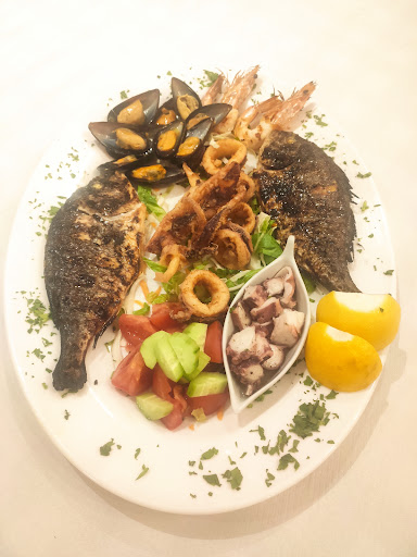We were shocked the platter didnât come served with anything (not even chips which we had to order extra) given that it was âŹ55. We would have appreciated it far better if they had served just one fish and given us some chips or extra prawns/calamari instead.