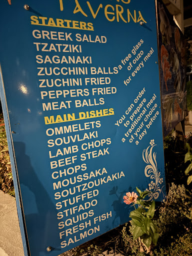 There was no info as to what our food came with and when both dishes arrived they only came with chips and a couple of slices of tomato. Having read reviews and seen previous photos dishes seemed to come with plenty of veg/salad and some tzatziki. In reality we were just served meat and chips. We add to order tzatziki to go with our food after it had arrived at an extra âŹ4. Iâve not know any meals in Greece to come with virtually nothing, so this was very disappointing.