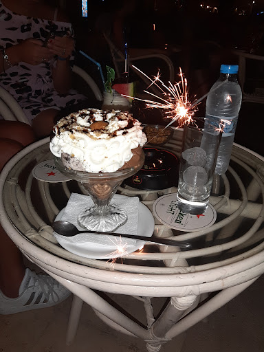 dit is een klein familiebedrijf, maar oh zo leuk. Een oom die je begroet, de vader maakt de coctails of het ijs, de moeder en de dochter serveren, en de broer helpt overal mee mee. dit tentje is zeer goedkoop. er is keuze (in de zomer alleen) uit 250 soorten coctails, en je kan kiezen uit 100 soorten ijs. De coctails worden in leuke glazen opgemaakt. als je ijs besteld, dan krijg je veel ijs, slagroom, sterretjes die aangestoken worden en een flesje water erbij. als je op je bestelling wacht, dan krijg je er een schaaltje chips en nootjes bij. deze worden al aangevuld als je schaaltje bijna leeg is. Verder maakt het personeel ook graag een praatje met je, echt een aanrader deze bar.