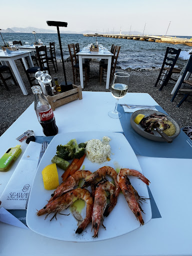 Read moreThe location was fab pulled up a seat and just listened to the sea. That’s as far as the positives can go. Especially comparing the places we had eaten this holiday. We have paid far less for far more better quality food. First problem arose when we walked in and all the staff were busy dealing with an incident. Not their fault but probably a sign we should have left. We ordered fish salad as a starter. It was Taramasalata but didn’t say that so without any bread or prompting out came just a bowl of dip. It then took 15 minutes to get someone’s attention for some bread. Mains were swordfish steak - a little bland served with 2 cubes of grilled potato and barely a spoon of vegetables. Then prawn Saganaki - 4 prawns in a tomato sauce served in a frying pan? With no side to accompany. Good job we had ordered that bread earlier. Wasn’t the greatest meal we had but was at least edible so couldn’t give less...