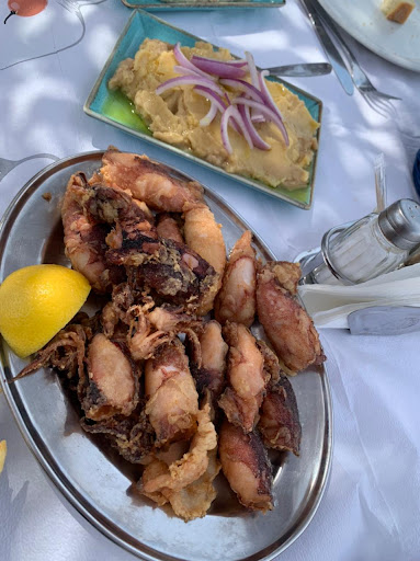 I’m giving 5 stars because I liked our waitress, she was friendly and polite. I was amazed how she made me feel comfortable even though I, unfortunately, don’t speak Greek. She even showed me what fish they had available after she saw that I was having difficulties with the menu as there were no photos (not that I expected any photos). The menu had English translation, but I was googling fish photos 🥲 The food was okay, it just lacked flavour. But it was fresh!!! I ordered anchovies, sardines, and squid. Nothing was salted or had any spices or marinade, the anchovies and squid were deep fried, couldn’t tell if sardines were baked or pan fried. Now, I took 1 star off because the crab dip was just mayonnaise with maybe 1 chopped, imitation crab stick and a sprinkle of corn kernels. The fries were good, but zero salt. Maybe I misunderstood and had to ask for it to be salted during cooking. Fish also wasn’t fishy, which means it’s fresh. Also there was no toilet paper, but I’m sure they’d give me some if I had asked. Overall, I enjoyed food. I gave 3 stars for the atmosphere because people kept coming from the beach and staring at my table, not sure what...