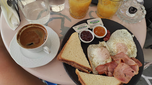 Read moreΠήραμε το πρωινό του μπαμπά! 4 ψωμιά του τοστ,2 αυγά τηγανητά 2 φέτες μπεικον και 2 λουκάνικα μικρά! Είχε επίσης και 2 ντιπακια με μαρμελαδα.Πέρα του ότι το κοστολογουν 9 ευρώ (κατά την γνώμη μου ακριβό) έκαναν περίπου 30' για να μας φέρουν νερό στο τραπέζι και συνολικά 50' μέχρι να έρθει το πρωινό. Κι όλα αυτά με 6-7 παρέες στο μαγαζί! Τουλάχιστον οι κοπέλες που σερβίρουν ήταν...