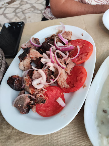 Small village restaurant with absolutely fantastic atmosphere and delicious food. We passed by a few times on our way to Melidoni beach and decided one day we have to stop for dinner. What really drew us in was this massive charcoal grill outside with meat slowly roasting all day. So of course we had to order a portion of that - excuse me, that was probably the best portion of pork meat that I've ever had. I do not normally eat pork. The meat from the grill was tender, juicy, not fat, and just SO SO flavourful. We also got meatballs and they too were fantastic - juicy and soft, really tasty. Smaller miss was stuffed zucchini, it was not really my taste, but that's just personal preference, my husband liked them just fine. The atmosphere of this place is so cool - colorful chairs, sunset and view of the vineyard, proper village mood, grill smoking and smelling delicious. And cats. Cats everywhere. Really THE Greek atmosphere and taste I...