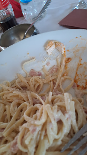 Αν θέλετε να περιμένετε 50 λεπτά για να φάτε άνοστα και αναλατα μακαρόνια ελάτε... Απίστευτο πως μπορείς να κάνεις χάλια το πιο εύκολο φαγητο!!! Το αποκορύφωμα.... στην καρμπονάρα που τελικά ήρθε (με όση καθυστέρηση γινοταν) υπήρχε μέσα ένα μεγάλο κομμάτι κοτόπουλο Δε θέλω καν να σκεφτώ οτι ήταν περίσσευμα απο αλλη μερίδα (ιου) Ούτε τι θα γινόταν αν πχ ήταν κάτι στο οποιο εχω αλλεργία